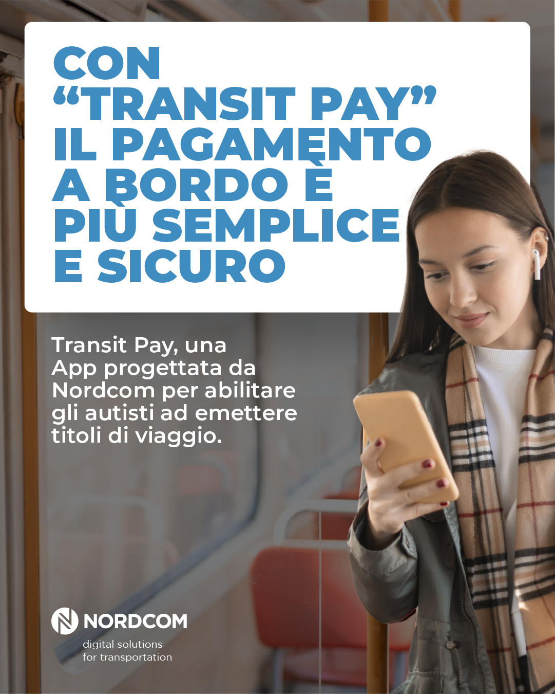 Rendere il ticketing più semplice, efficiente e sicuro: è questo l’obiettivo di Transit Pay, l’innovativa applicazione progettata da Nordcom per trasformare l’esperienza di pagamento sui mezzi di trasporto pubblico. Grazie alla bigliettazione dinamica e alla tracciabilità in tempo reale, la nuova soluzione digitale ottimizza il lavoro degli autisti e garantisce massima sicurezza ai passeggeri.